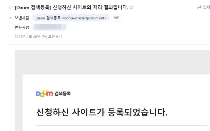 다음의 사이트 등록은 사이트 URL이 등록한 메일로 처리 결과를 보내줍니다.