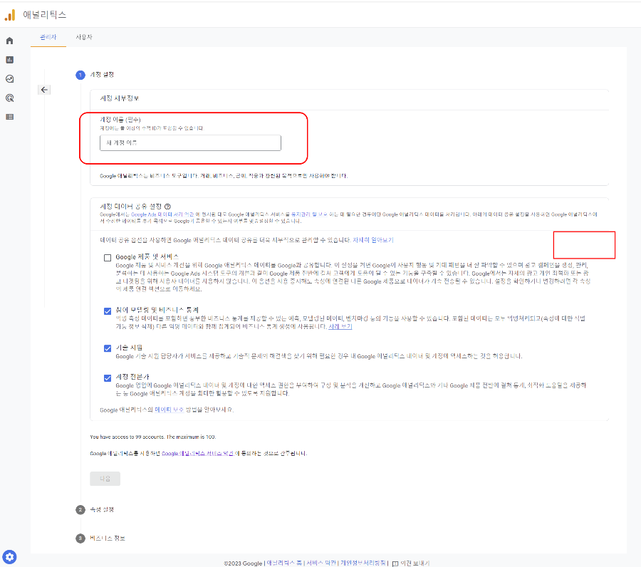 계정 이름을 정해서 넣으시면 되는데 나의 사이트들을 관리하는 상위계정이라고 보시면 됩니다