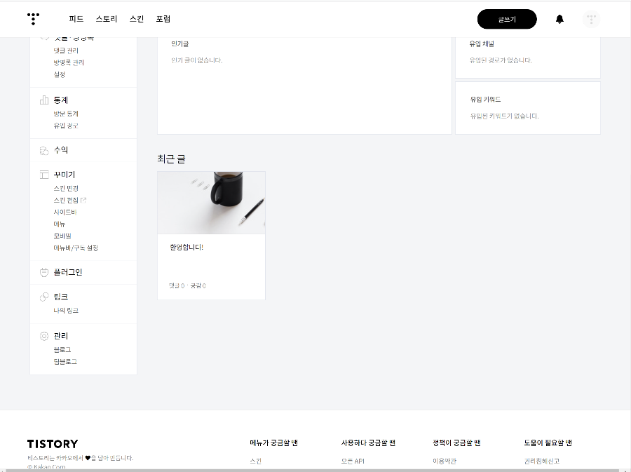 당연히 내가 만든 티스토리가 있어야겠죠.