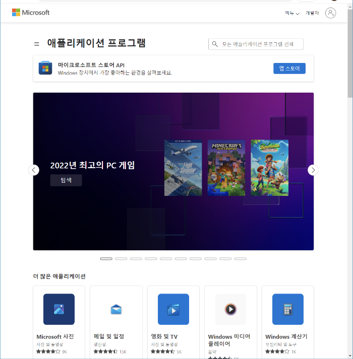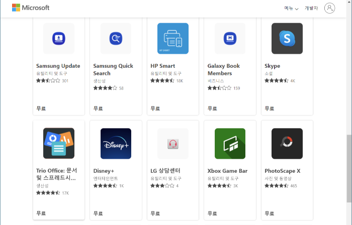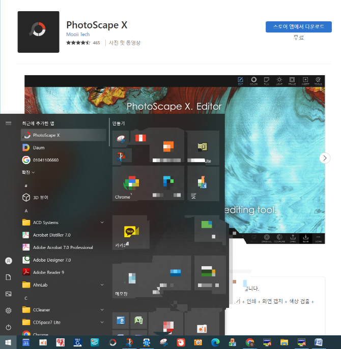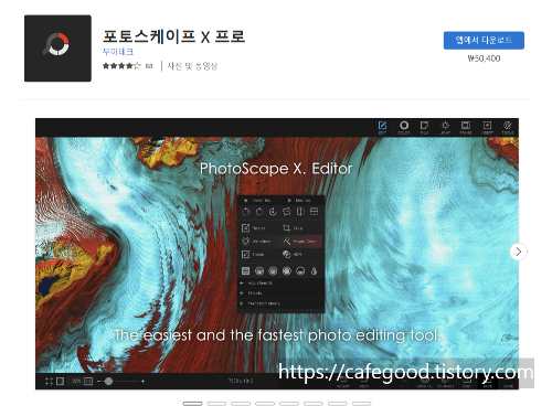 여기서 각종프로그램 목록이 나오는데 아래로 조금 내려 보시면 여러 프로그램 중에 포토스케이프X 프로그램을 선택하면 스토어에서 앱 다운로드 하는 화면으로 넘어갑니다.