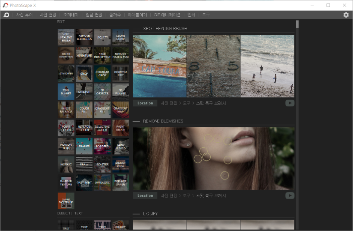 그동안 포토스케이프(PhotoScape)를 많이들 사용했는데 WINDOWS10이 나오면서 포토스테이프프로그램도 포토스케이프X 한글 최신판을 무료 제공하고 있습니다. 좀 더 작업환경이 요즘 윈도우10 프로그램 환경하고 유사한 UI로 구성 되어 익숙하고 사용하기 편리하실 겁니다.