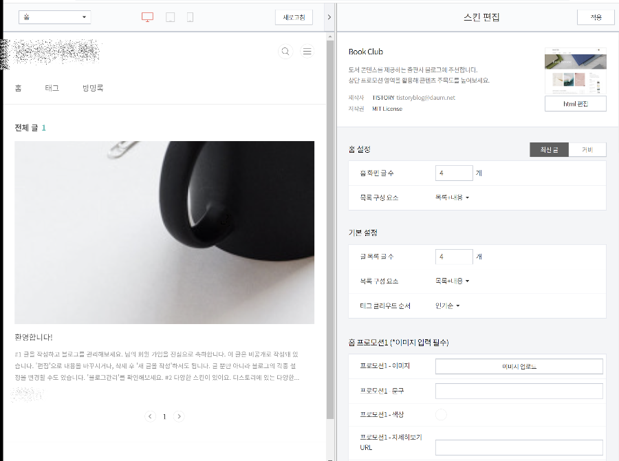 한번 해서 안되면 또다시 승인 신청을 할 거고 계속할 거니 그럼 승인이 나오는 시간을 기다리는 시간에 티스토리 설정을 미리미리 해보는 과정이 필요합니다.