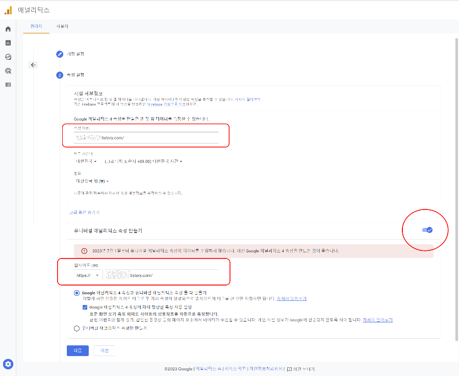 여기서 이걸 왜 선택해야 하냐면 기존 구글 애널리틱스를 UA라고 하고 새롭게 신버전이 구글 애널리틱스 4 일명 GA4라고 합니다. 아직은 GA4에서는 구글 애드센스를 완벽하게 지원하지 못하고 있어 두 가지를 만들어 별도관리를 하는 게 나중을 위해서도 좋습니다.